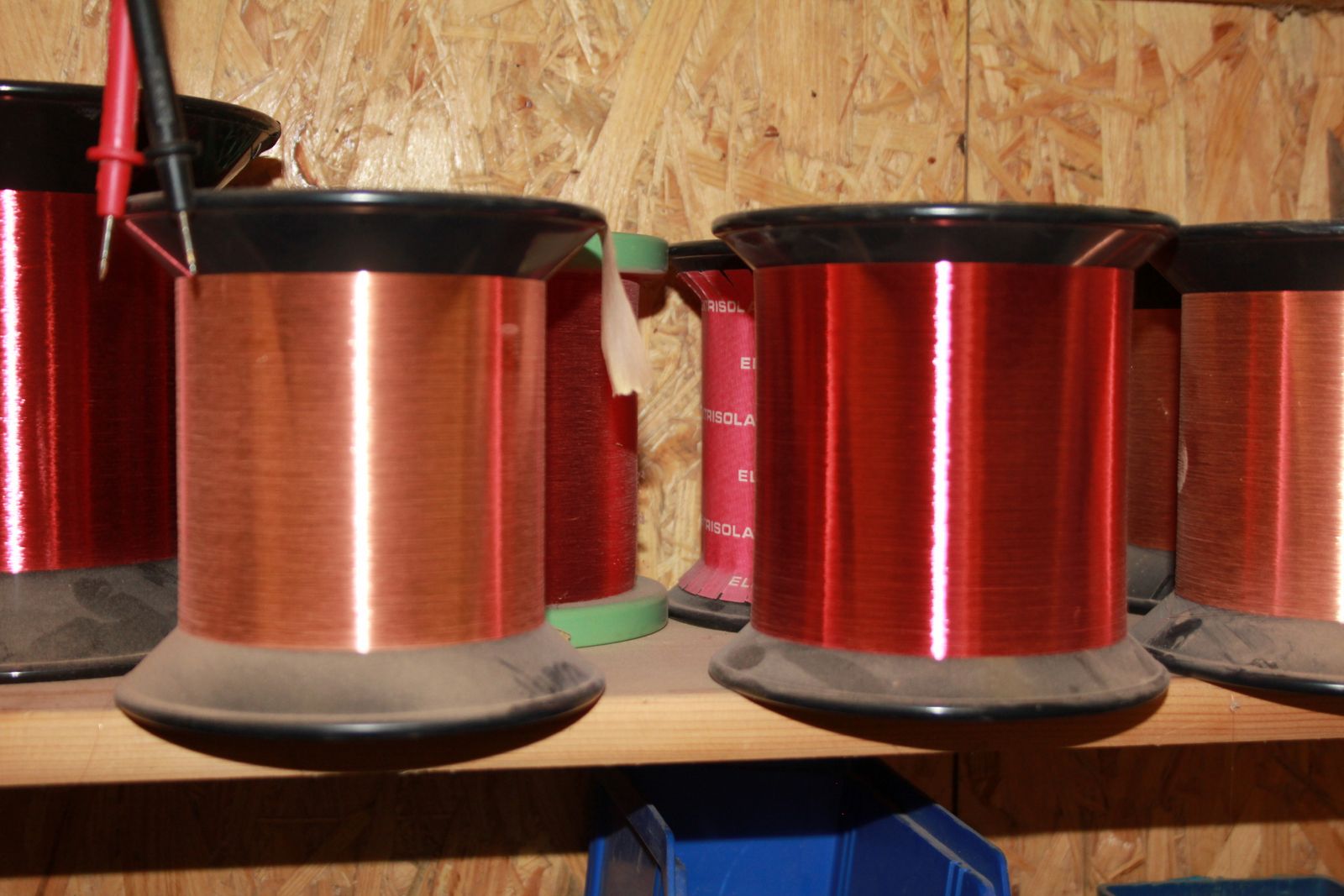 Magneten und diversen Kupferlackdrähten in Handarbeit.